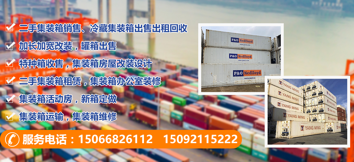 主營;二手集裝箱銷售、冷藏集裝箱出售出租回收、加長加寬改裝,罐箱出售,特種箱收售,集裝箱房屋改裝設(shè)計,二手集裝箱租賃,集裝箱辦公室裝修,集裝箱活動房,新箱定做,集裝箱運(yùn)輸,集裝箱維修等業(yè)務(wù)